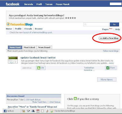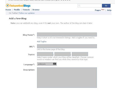 pertama harus punya aku facebook trus login dulu,lalu masuk ke networkedblogs.com